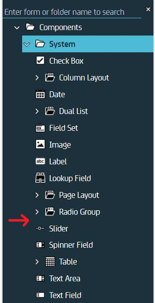 Somehow, the Select + Select Option (and/or other components) form system components disappeared in our development environment. I found a table named USM_FORM_ENTITIES and the Select item (form_entity_id = 13) and Option item (form_entity_id = 14) are in our production environment but not development.