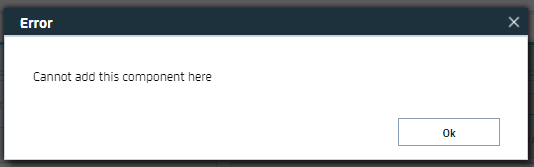 A consequence of the above scenario is that end users may not be able to add a form element or import content from another Catalog instance. For instance, one tries to add a new radio button group to a catalog form, even a new form and folder, and a message would present saying "Cannot add this component here" and a follow up message stating "An error has occurred. Contact the System Administrator"