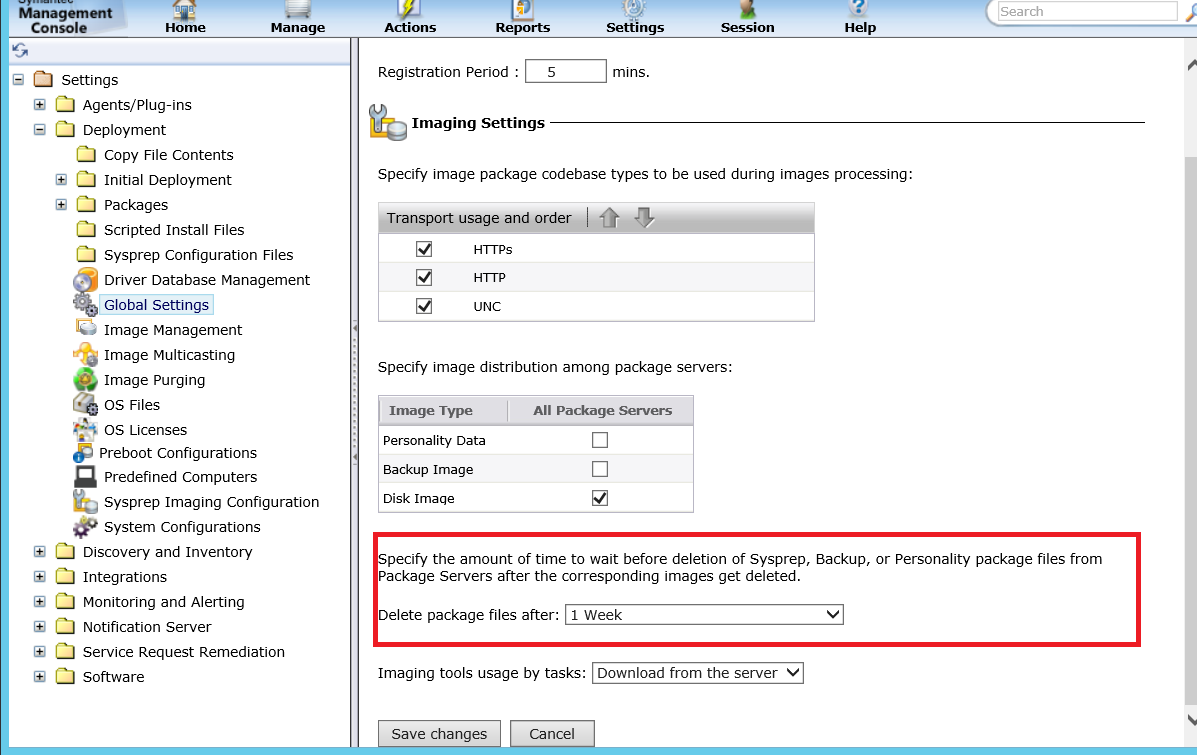 This article explains how to specify how long image packages can stay on Package Servers after an image was deleted