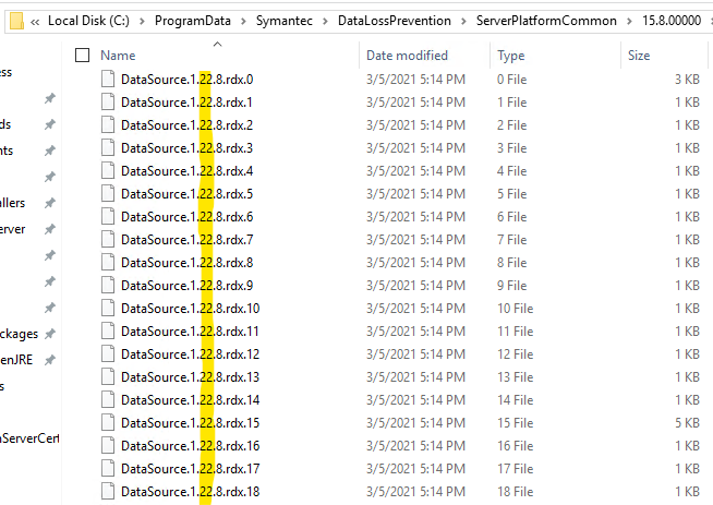 C:\ProgramData\Symantec\DataLossPrevention\ServerPlatformCommon\15.8.00000\index