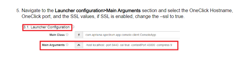 4. Select OneClick WebApp config, and scroll to 'Main Arguments" parameters, and verify the parameters are correct as noted in the below screenshot: