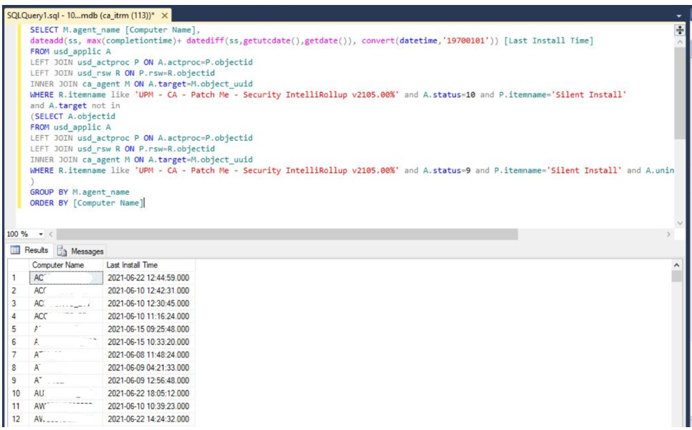 Result will be displayed as below : Result will display only two fields with computer name and Last Install time ( which is failed time ). In DB there is no specific field avaialble with name Failed Time.
