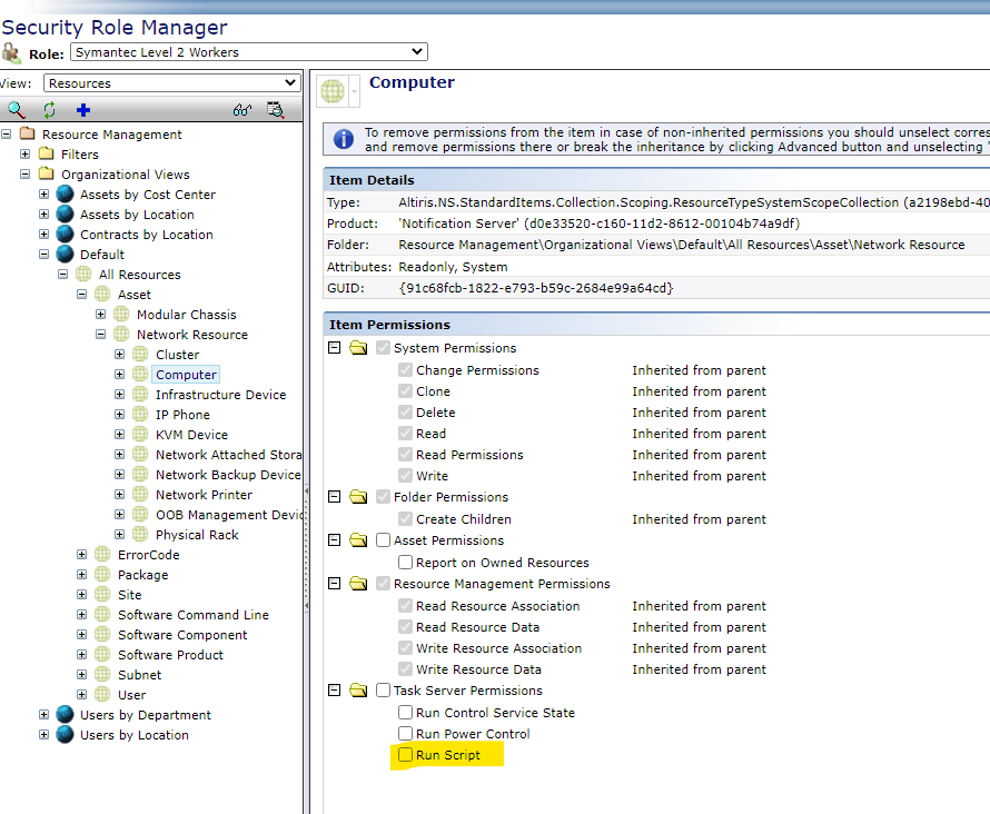 Looking for a Security Role that will allow a user to create and run tasks (scripts – quick delivery etc.) on servers/(clients) without giving full admin privileges. The error being seen is: