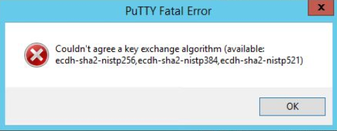 The Couldn't agree a key exchange algorithm is expected behavior with older version of PuTTy or PuTTy integrated solutions like WinSCP.