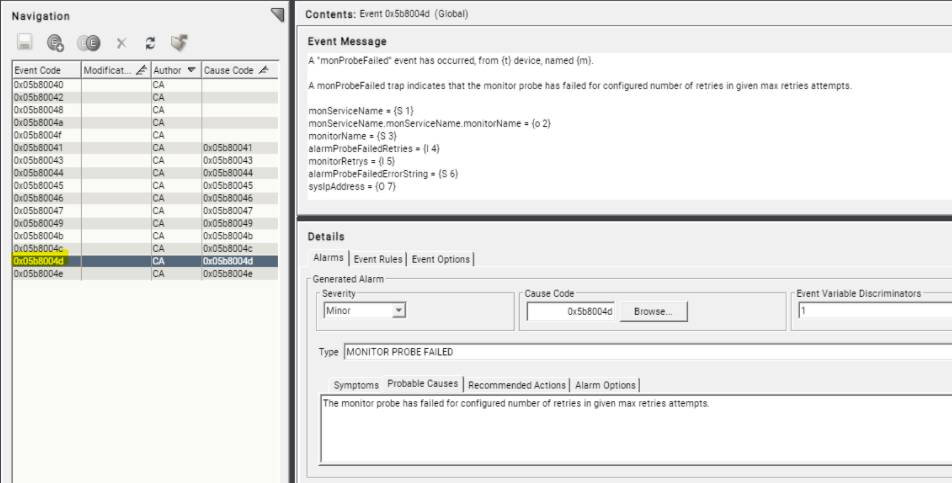 Out of the box the NS-ROOT-MIB supplied with Spectrum does not contain the Trap Support for monProbeFailed NOTIFICATION-TYPE OID 1.3.6.1.4.1.5951.1.1.0.78