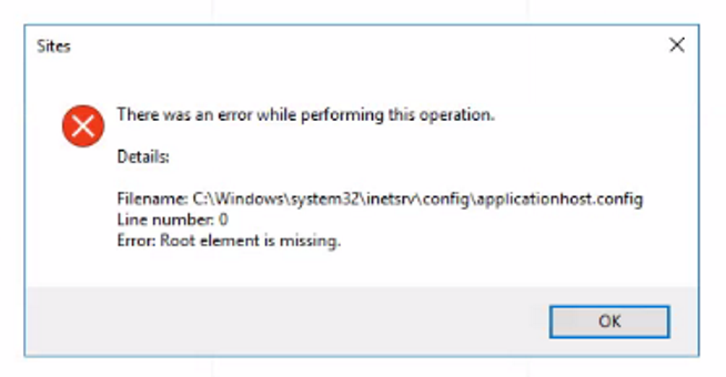 ApplicationHost.Config in 'Windows\system32\inetsrv\config\applicationHost.config' was corrupted (Size was 0KB)