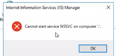 IIS service was stopped and failed to start: