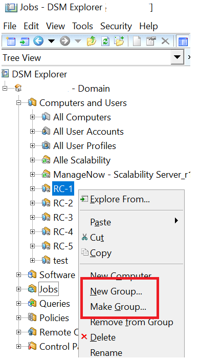 In the DSM Explorer are two options to create new Computer Groups into existing ones: New Group and Make Group.