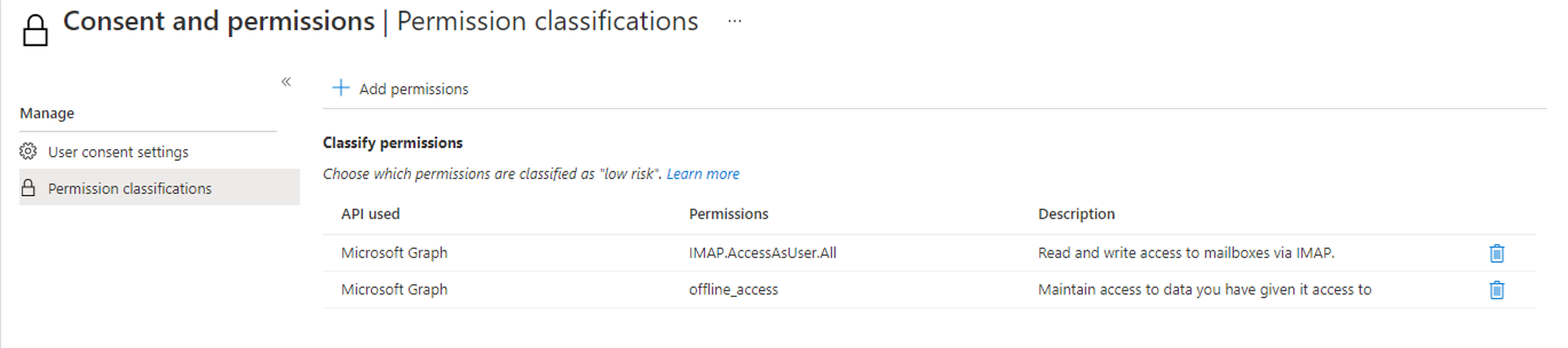 See Step F under "Set the Security Level as OAuth 2.0 - IMAP"