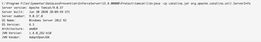 cd to %Program Files%\DataLossPrevention\EnforceServer\<version>\Protect\tomcat\lib and run the below command.