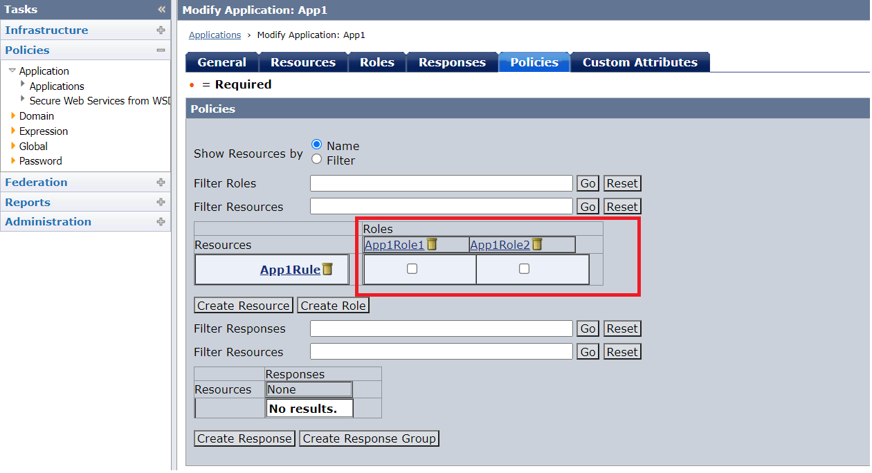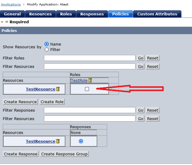 2) Before deleting, the above roles, just check in Policy tab, if these roles are mapped or not. If mapped, just uncheck them in the Policy Tab screen, as below.
