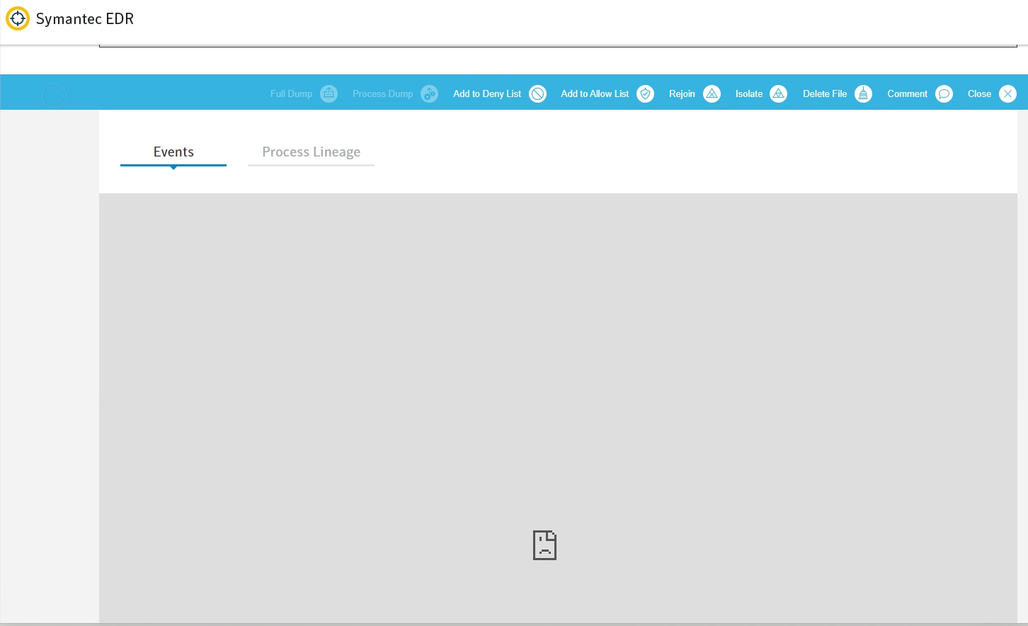 When performing an event search in EDR (Search -> Database -> Events) or when attempting to view the events associated with an incident, the appliance shows a blank screen where the results should be.
