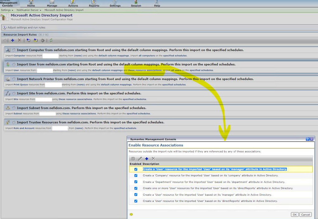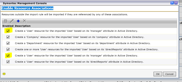 Under SMP Console>Actions>Discover>Import Microsoft Active Directory when clicking on "these resource associations" for the User AD Import Rule, two (2) resources associations called "Create a 'User' resource for the imported 'User' based on its 'manager' attribute in Active Directory" are seen: