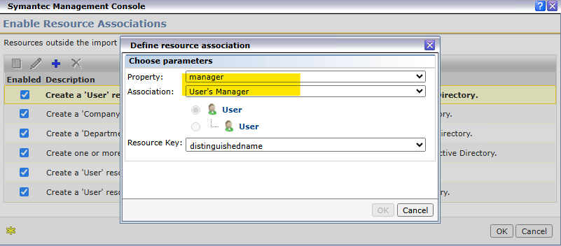 You will correctly see two of these Resource Associations with the same name ("Create a 'User' resource for the imported 'User' based on its 'manager' attribute in Active Directory") but both are referring to 2 different subcategories.