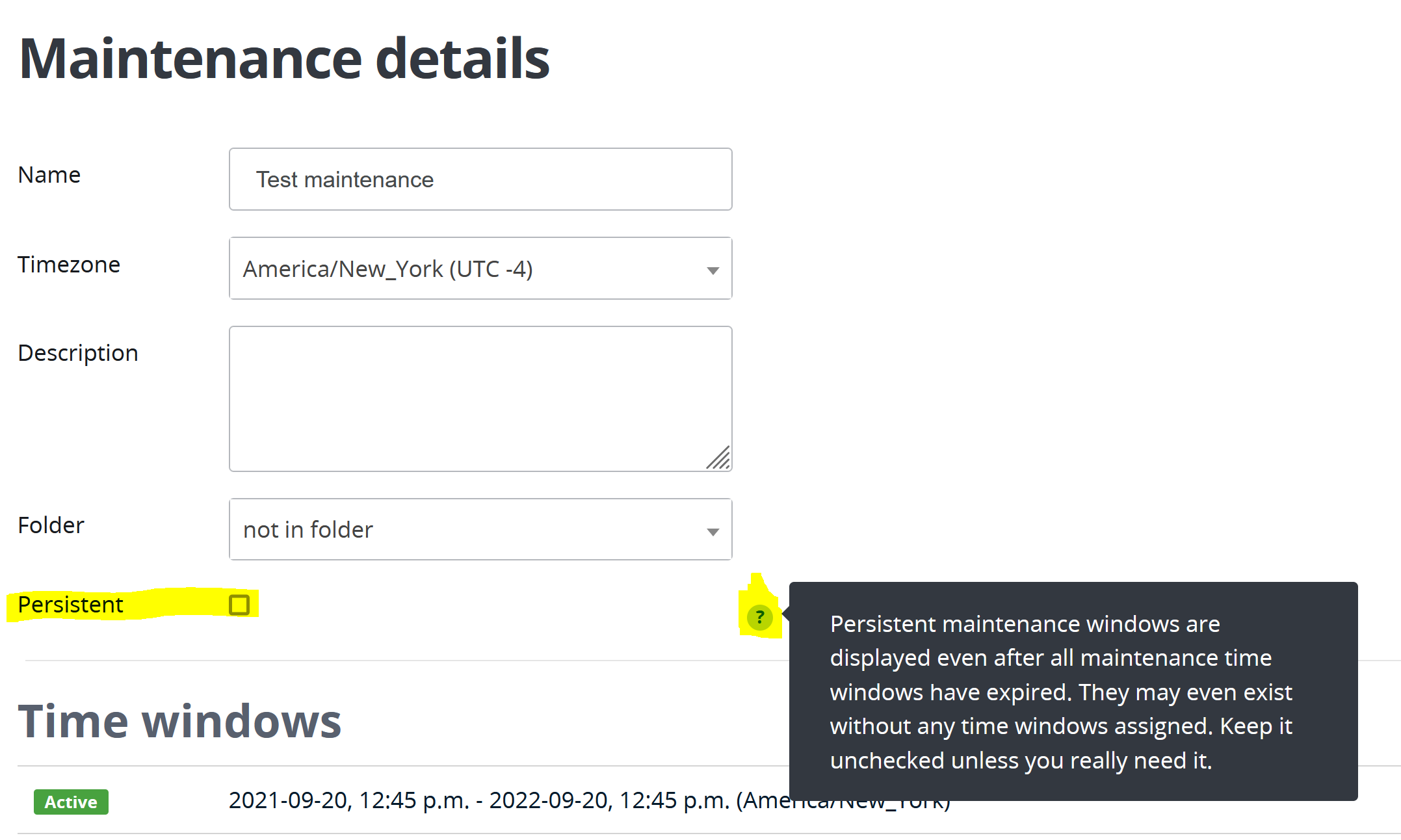 When I go to the maintenance tab, the maintenance window is no longer appearing. Is there a way to find the details of this maintenance window?