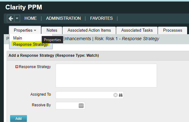 In the Classic UI, there is a subpage called "Response Strategy" within Risks for a Project. Is this something that can be hidden? Create a Risk, open it and you will see this link in the Properties Tab page. A screenshot is being made available below.