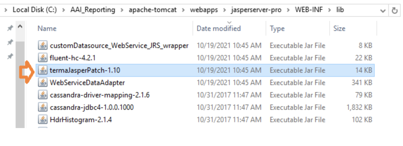 ls –l $INSTALLDIR/apache-tomcat/webapps/jasperserver-pro/WEB-INF/lib/*JasperPatch*.jar