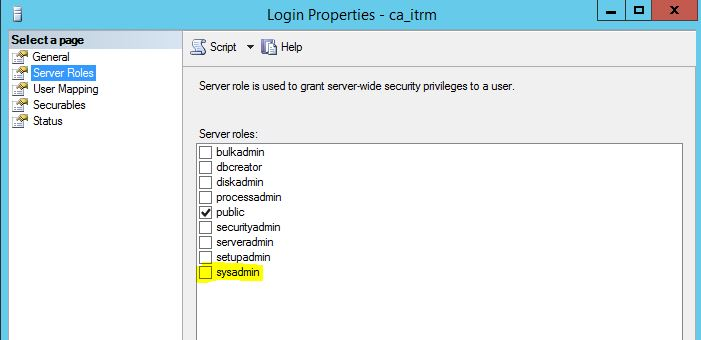 However, there could be a problem if the server role 'sysadmin' is assigned