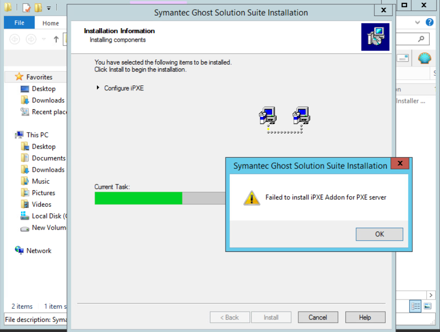 Ensure that UAC is set all the way down and antivirus is disabled. Ensure iPXE prerequisites are installed on the server.
