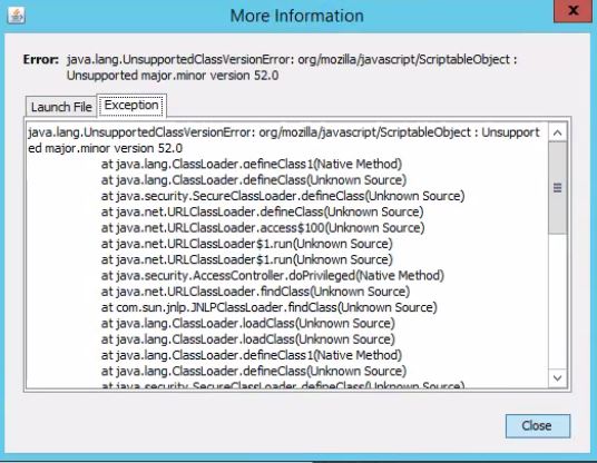 Error: java.lang.UnsupportedClassVersionError: org/mozilla/javascript/ScriptableObject : Unsupported major.minor version 52.0