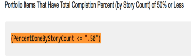 When users are trying to search features that are not yet completed, they usually place in the filter "percent done by story != 100" and always the results are not accurate?