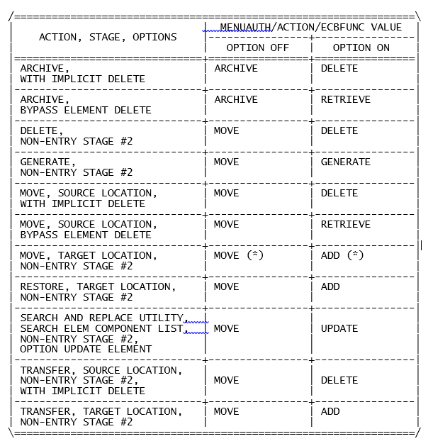 - With this option turned on, the MENUAUTH/ACTION/ECBFUNC value can never be