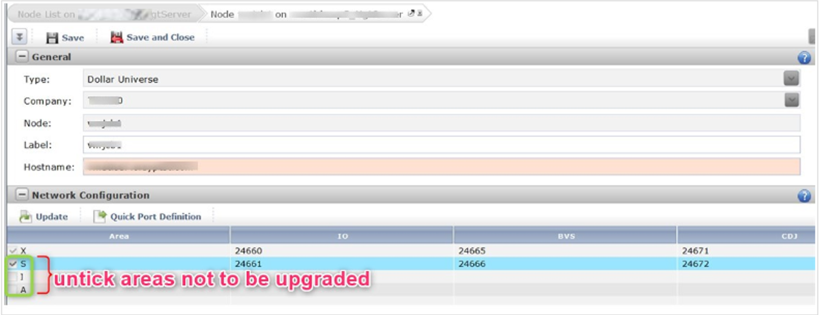 For 2, if you want to upgrade only the objects from area X of the node, Update the Node declaration in UVMS and untick the Areas (S,I,A) that are not required to be checked or upgraded as below: