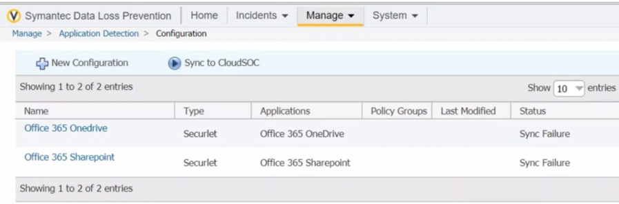 You see sync failure status in DLP Enforce under the setting Manage / Application Detection / Configuration: