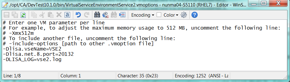 Edit the vmoptions for each vmoptions file. VSE1 using default port of 2013, has a unique VSE name and log file.