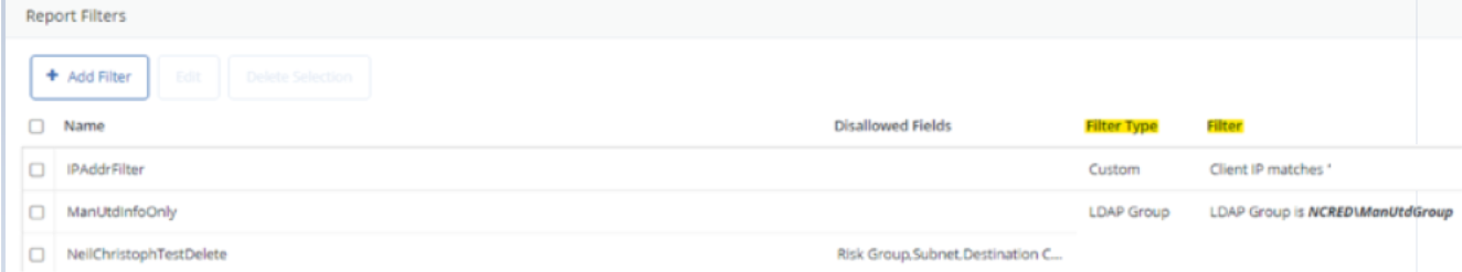 2020年7月に実施されたレポートプラットフォームの更新時に、"Filter Type", "Filter"を設定するオプションが削除されました。