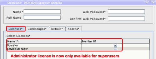 From 21.2.4 onward, the privileges of administrator users have changed to only allow limited actions on different DX NetOps Spectrum user and user groups.