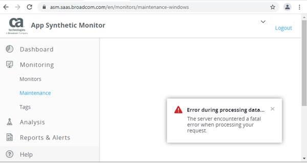 Currently, we are having problems with the ASM portal. Blank page when Monitors option is selected: