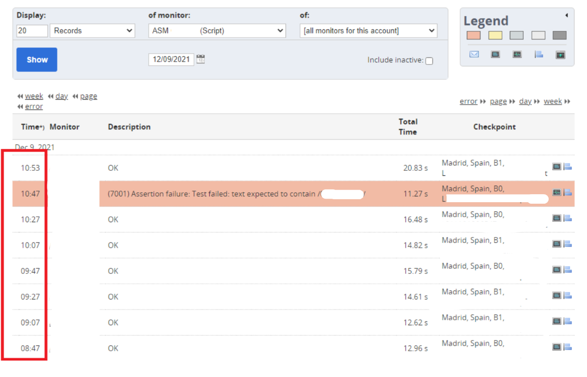 This is an example of a monitor defined with a 20 minutes interval. It fails at 10:47 but the next check is executed at 10:53 (5 minutes).