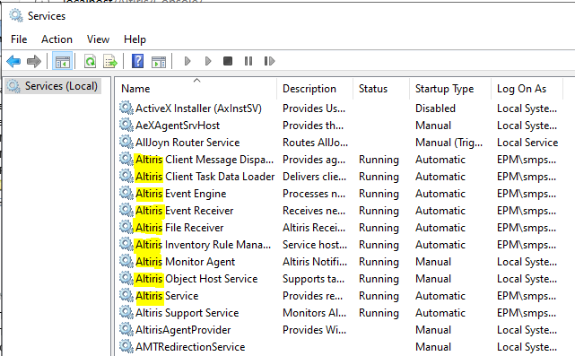 - Check the Altiris Services on the Notification server and make sure they are running.