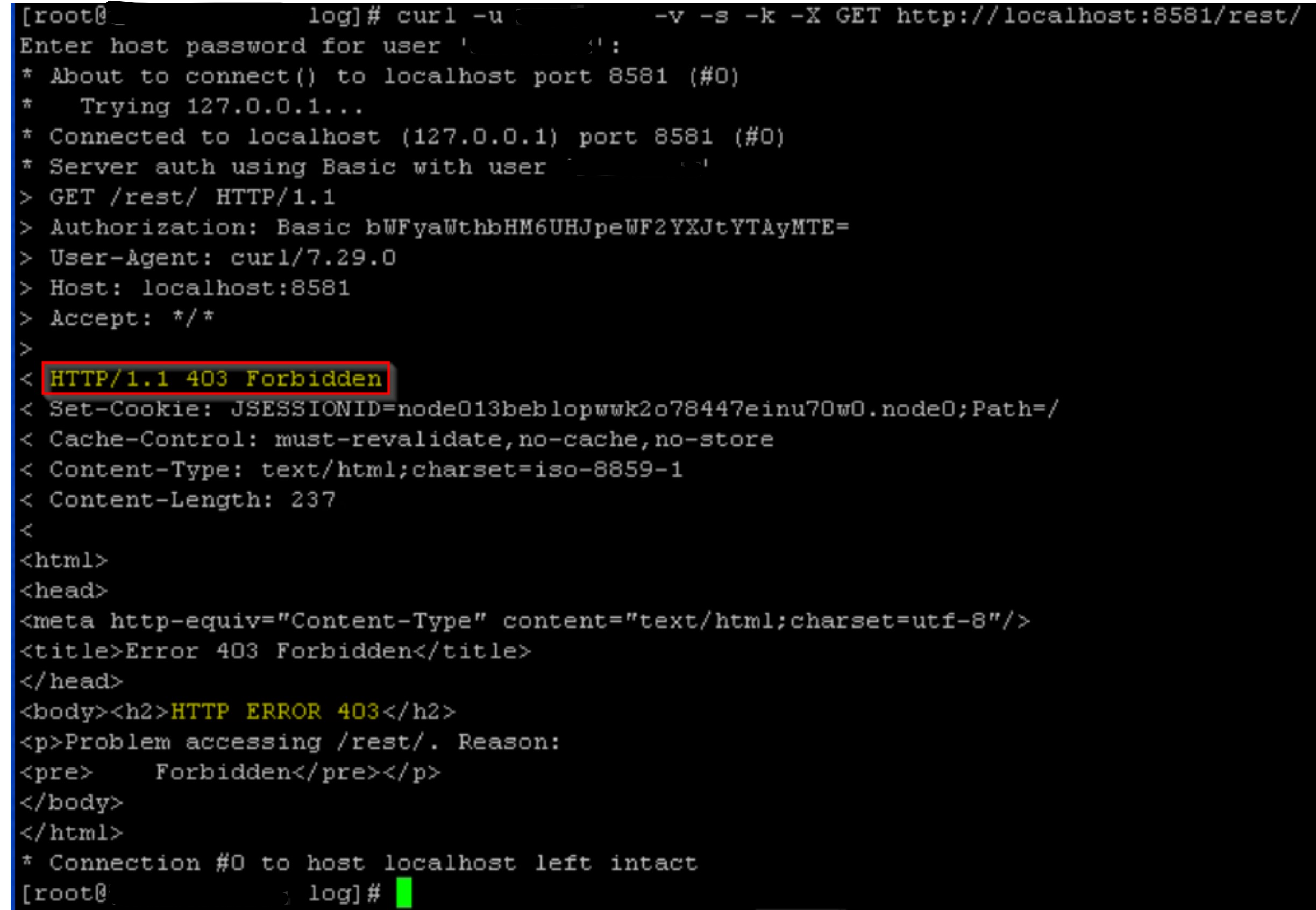 $ curl -u admin -v -s -k -X GET http://localhost:8581/rest/