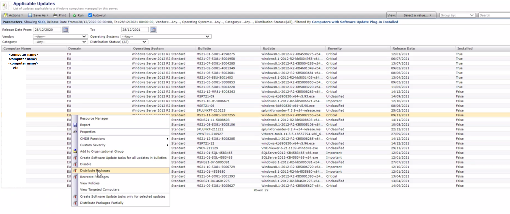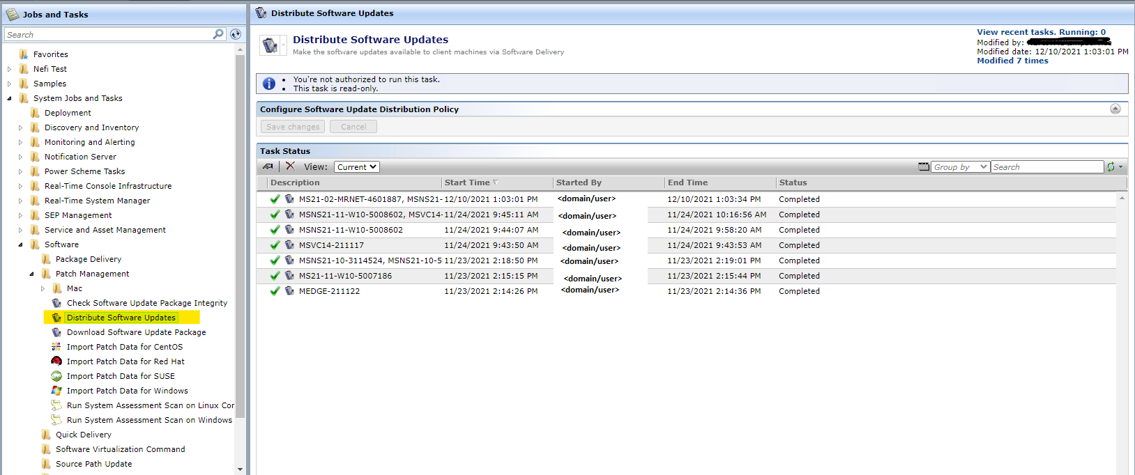 Trying to create a new "Software Update Policy" task to distribute some patch packages as seen in this screenshot:
