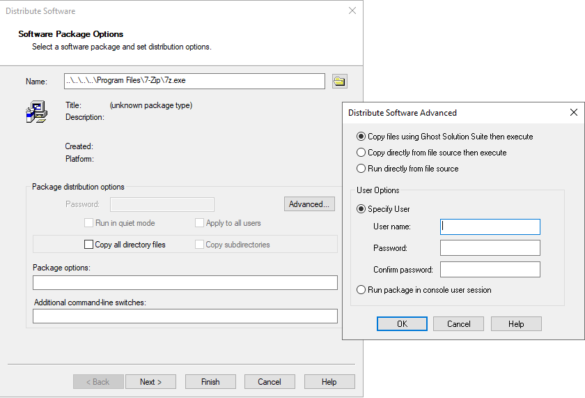 If either of the other 2 run options are selected, the full UNC path to the Software Package should be used (the console should tell you if the entry is not correct)