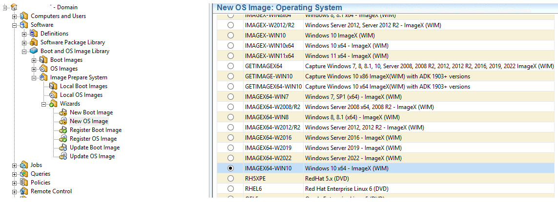 2- Create a new OS Image of type "GETIMAGESX64-WIN10" using Image Prepare System Wizard - New OS Image :