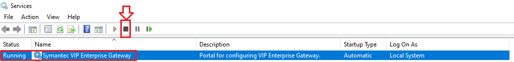 The VIP Enterprise Gateway console returns HTTP 503. Service Unavailable error.