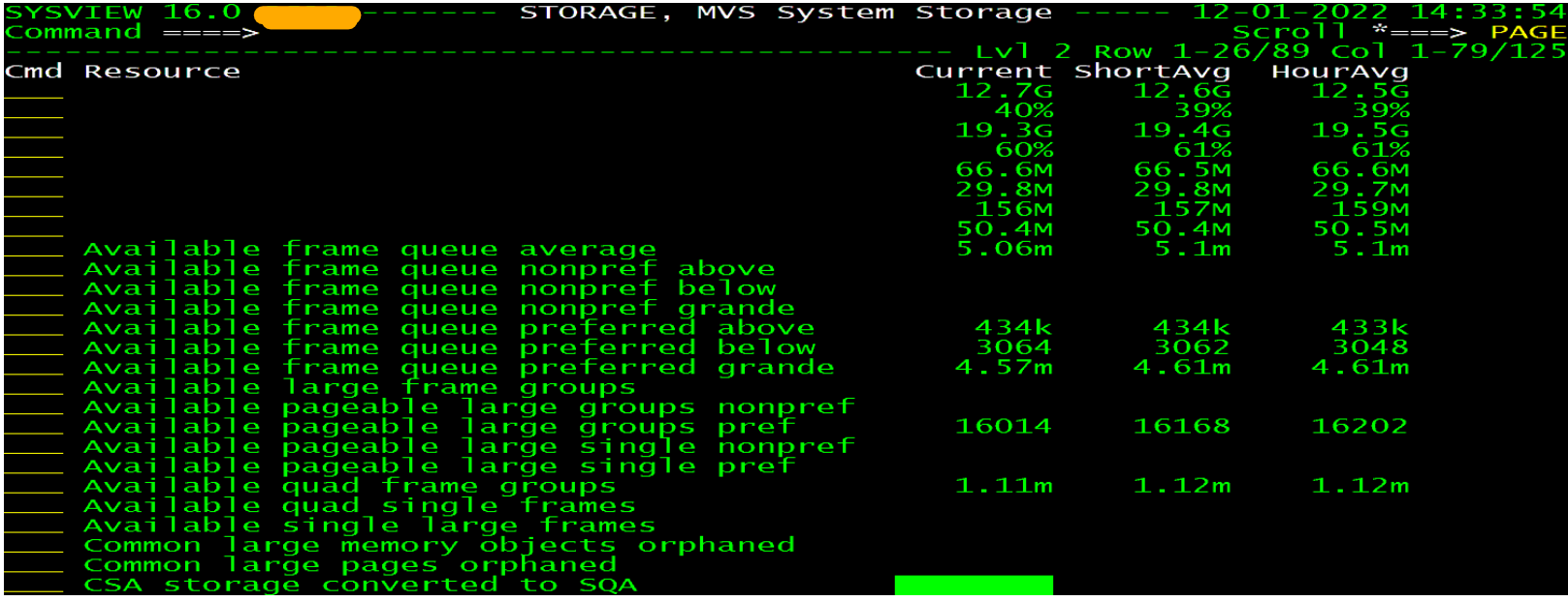 We were told about an issue on our sandpit Sysview Systems where the STORAGE screen displays blank information. STORAGE display.
