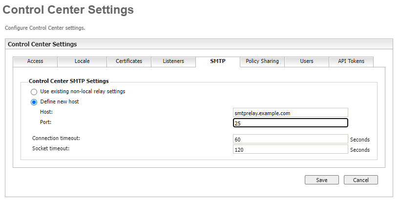 If Administration > Control Center > SMTP is configured to use a specific destination host, please ensure that the configured destination host is both accessible and running and SMTP server.