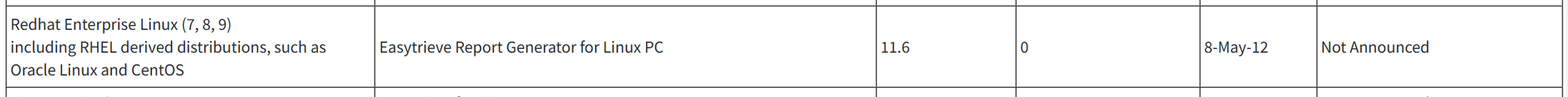 Easytrieve officially supports RHEL distribution family, but it works on virtually every Linux distribution.