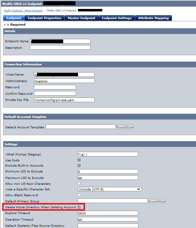 Select "Delete Home Directory When Deleting Account" box in IM User Console in the UNIX v2 Endpoint configuration. With this option enabled, when the account is deleted IM will delete the user account's home directory and also its mail file under /var/spool/mail directory.