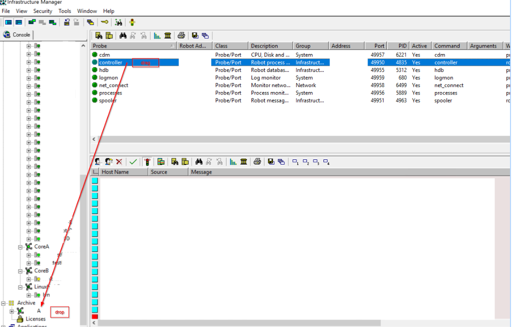 2. Now, drag-and-drop "controller" probe from this robot down to the 'Archive' node in IM client.
