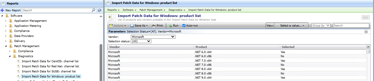 As an administrator, you need to be able to report on the current list of available vendors and products that Patch Management Solution has available, and which ones you have selected.