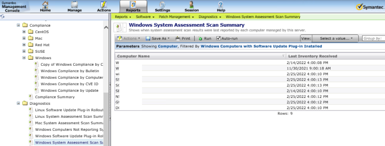 This will list each computer in the system and display the date/time the last inventory (Windows Assessment Scan) was received.