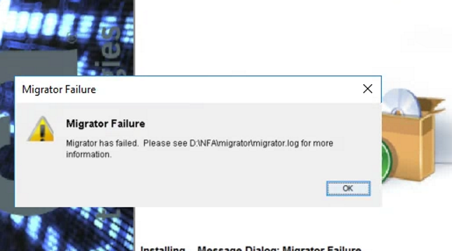 Open the "\CA\NFA\migrator\migrator.log" and make sure the migrator exits with a code of 0 and then that last frame inserted the NFA versions you are attempting to upgrade to.