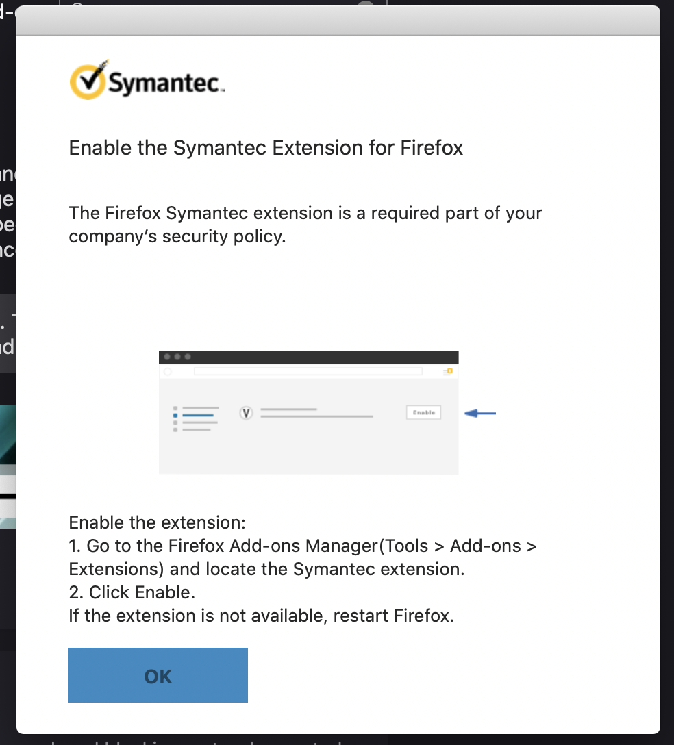 User get following popup for DLP extension after installing DLP agent on MAC for Firefox browser.