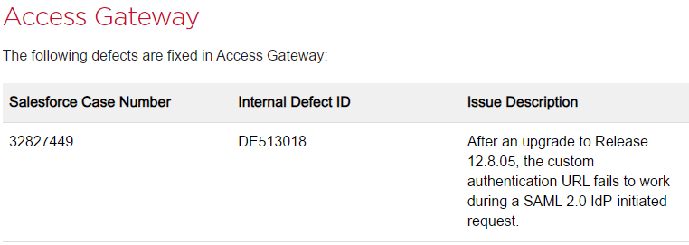 - Access gateway R12.8 SP5 is using /siteminderagent/redirectjsp/prodredirect.jsp for his Auth URL instead of /affwebservices/redirectjsp/prodredirect.jsp