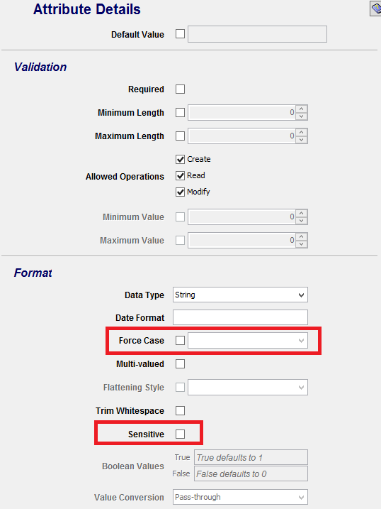 If you need to reference\ search user attributes irrespective of the case (ie "James" and\ or "james") then you need to set the "Force Case" option to "Preserve".